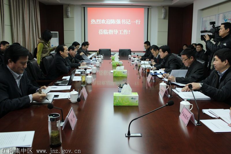 3月2日下午,市委书记陈强在江南集中区调研时强调,全市各有关部门必须从全局出发,进一步提高思想认识,加强协调配合,加大落实力度,以良好的精神状态和工作作风,不断推进江南集中区建设迈上新台阶。市委副书记徐建,市委常委、常务副市长张夏林,市委常委、政法委书记、公安局局长王迎春,副市长、市委秘书长桂林及市直相关部门负责同志和江南集中区管委会负责同志陪同调研。
