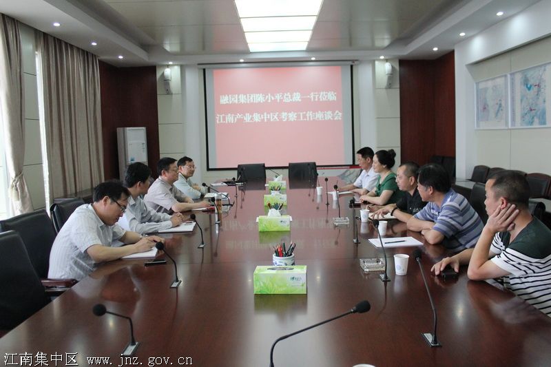 5月19日,融园控股集团有限公司总裁陈小平率集团高管来区考察。管委会副主任王健文热情接待了陈小平一行,并召开座谈交流会。管委会综合部、招商部有关负责同志参加座谈。