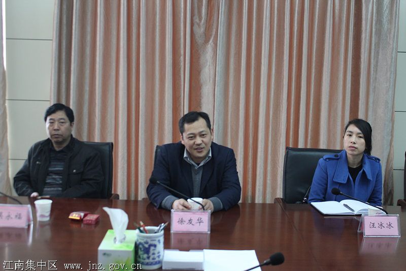 徐友华对安徽舒雅集团来区考察表示热烈欢迎。他向张克义一行详细介绍了集中区的区位交通优势、优惠的投资兴业条件和完备的企业服务。他指出,希望我们双方进一步增进了解、达成共识,加快相关接洽,尽早在相关合作方面取得实质进展。