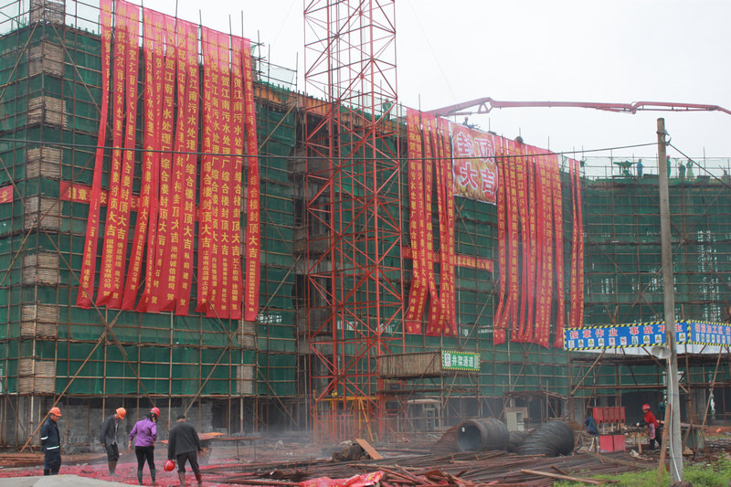 5月17日上午,在一阵鞭炮声中,集中区第一污水处理厂(一期)工程综合楼成功封顶。综合楼为四层框架架构,建筑面积为2991.05平方米,建筑高度为15.45m,该工程竣工后,将作为污水处理厂的主要办公场所,为运营人员进驻办公创造条件。