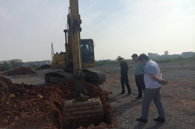 2015年4月28日下午,集中区财金部审计科组织建设单位、审计事务所深入工程现场,对凤鸣大道一期BT工程审计初稿中存在争议的临时便道、拌合场硬化等项目采取现场开挖核实工程量的方式进行了现场审计核实。