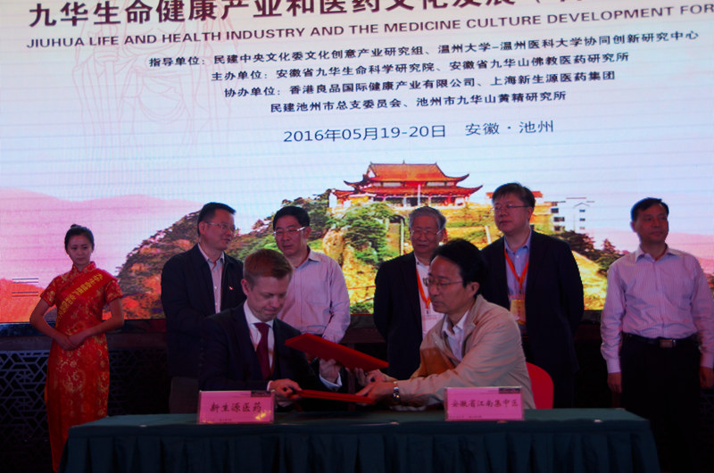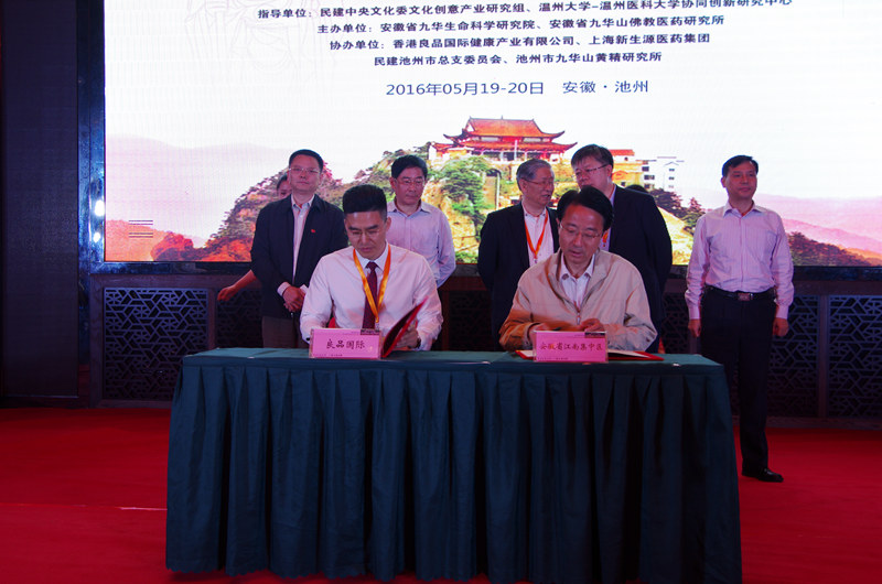 5月20日,在首届九华生命健康产业和医药文化发展高峰论坛会议期间,安徽省江南产业集中区管委会主任李建华与香港良品国际健康产业有限公司张晓峰董事长、上海新生源医药集团irenee.robin副总经理成功签约。香港良品国际健康产业有限公司将在我区投资建设黄精、蜂胶及佛医养生项目,打造佛文化+养生基地;上海新生源医药集团将国家卫计委“重大疾病防治科技行动计划-创伤修复专项”落户集中区,致力打造生物技术和健康产业的综合性研究智库、技术转化和产业基地。