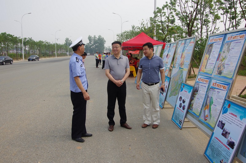 今年6月是全国统一开展的第十三个“安全生产月”,活动的主题是“强化红线意识,促进安全发展”,6月16日集中区安委办根据《安徽省江南产业集中区2014年 “安全生产月”和“安全生产江南行”活动方案》的安排,认真组织开展了“安全生产月宣传咨询日活动”活动中,集中区党工委副书记、管委会常务副主任王健文,管委会主任助理、重点办主任江涛,集中区规划建设部副部长徐天喜等领导亲临活动现场,对活动进行了指导。王主任一行仔细查看了活动展板,询问有关情况,对活动的开展给予了肯定并提出了有关要求。