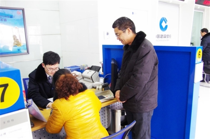 (图为味之源生物科技有限公司丁智峰副总经理和公司财务人员在建行集中区支行办理放贷手续)
