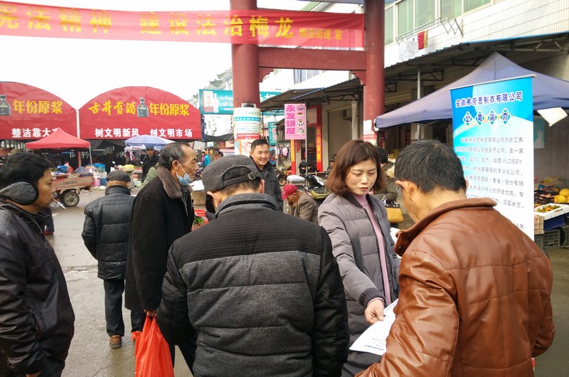 安徽弗劳思制衣有限公司是集中区行政执法分局招商引资落户企业,该公司于今年10月份正式投产,计划年产服装40万件,年底随着订单的大幅增加,公司现有人员已不能满足其生产经营发展的需要,行政执法分局了解情况后,充分发挥招商责任主体作用,第一时间深入企业,与企业负责人一起研究对策,制定招工方案,通过抓住外出务工人员返乡过年的良机,陪同企业深入附近街道、村落,零距离推介企业信息。同时充分利用集中区网站、池州人网、微信、QQ等网络平台进行宣传,扩大招工信息面,动员全局人员利用亲情招工、友情招工带动身边的亲朋好友参加应聘。