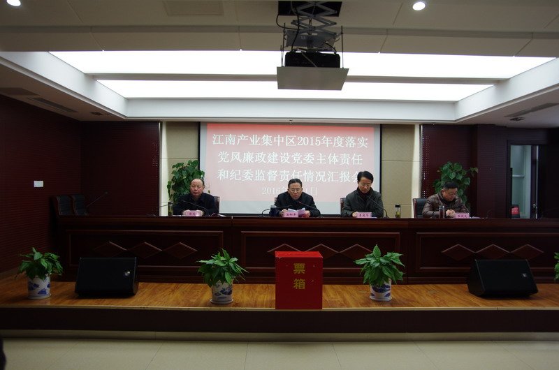 2月1日,市委第七考核组一行到江南产业集中区,对2015年度落实党风廉政建设党委主体责任和纪委监督责任以及领导干部个人履行党风廉政建设“一岗双责”和廉洁自律情况进行考核,并召开考核工作汇报会。