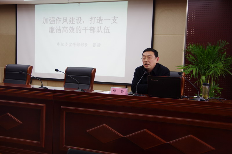 张箭结合多年从事反腐倡廉宣传教育、法规研究工作经验和感悟,以朴实的语言、生动的事例,深入浅出,引经据典,以《加强作风建设,打造一支廉洁高效的干部队伍》为题,阐述了在党风廉政建设新常态下,党员干部该如何坚守底线、筑牢反腐倡廉的思想防线,清清白白做人,廉洁高效做事。