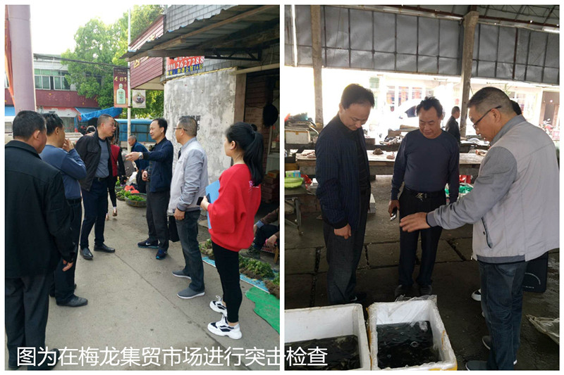 为进一步维护市场经营秩序,严厉打击销售野生动物及其产品的违法行为,根据市局统一部署,4月11日上午,我局执法人员会同梅龙集贸市场物业主管部门相关负责同志对梅龙集贸市场进行了突击检查,重点查看市场内各经营户有无生产、加工、销售野生动物的违法行为。同时,执法人员向市场经营业主宣传了有关保护野生动物的法律法规,教育广大经营户守法经营,不参与收购、出售野生动物及其制品,并号召大家对非法销售野生动物的行为给予监督举报。
