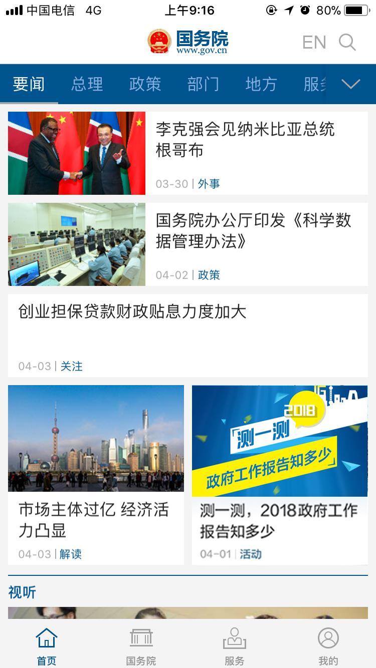 第三步:进入国务院客户端参与“测一测,2018政府工作报告知多少”答题活动。