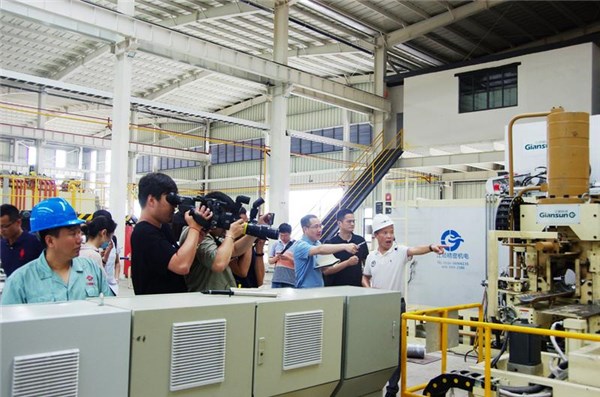 图为记者们在万峰铝业公司车间采访。记者鲍勇摄