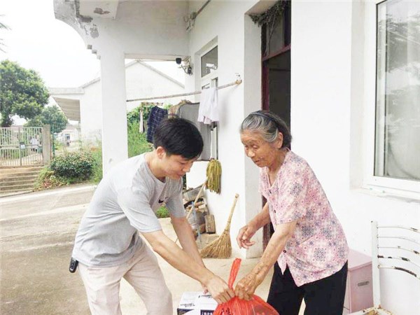 图为管委会综合管理部党支部党员在梅龙敬老院看望老人。