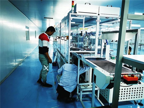 图为银鑫汇智能机器人有限公司车间正在调试新安装的生产设备