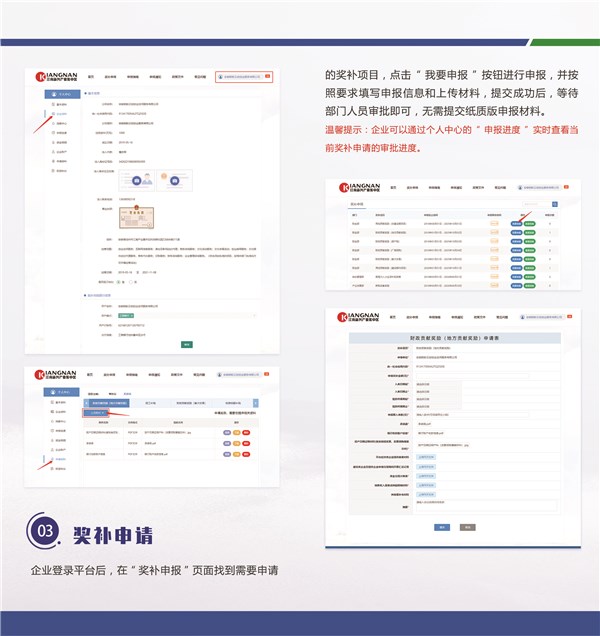集中区积极创新政务公开工作方式,依托池州市财政收支数据动态监管平台搭建“智慧江南·涉企奖补网络服务平台”,是池州市第一个“涉企奖补网络服务平台”。该平台聚焦企业政策兑现服务,围绕“政策入企难、政策享受难”等问题,切实打通政策落地“最后一公里”。平台涵盖“申报通知、涉企政策、政策解读、申报指南、奖补申报、申报进度、政策推送及应用归集”八大模块,基于高效、便捷的服务理念,突出“简洁易懂、方便实用”功能,为企业提供精准的“一站式服务”,实现政策获取、兑现方式从“纸上”转“云端”,切实提高集中区政策知晓面、落地率及影响力,实实在在架起政企沟通桥梁。同时,该平台也为主管部门用户提供多维度的项目内容呈现。