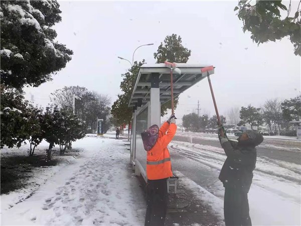 在做好铲雪行动的同时,综合管理部利用短信、QQ群、微信群对单位职工、企业连续发布低温和雨雪天气防范应对信息,指导并落实应对措施;规划建设部对园区各条道路及用电线路等设施的安全性和完整性进行摸排,及时联系供气、供汽部门,密切关注气温变化,对供热、供气负荷等相关参数进行适时调整,保证正常供应;行政执法分局加强楼宇户外广告设施及公交站台的安全排查,对超市、宾馆等三产服务业进行入户宣传,询问并了解园区内简易棚户房屋及居民情况,清理附近街面被压弯、压断的树枝以及公交站台停车棚棚顶积雪,杜绝安全隐患。