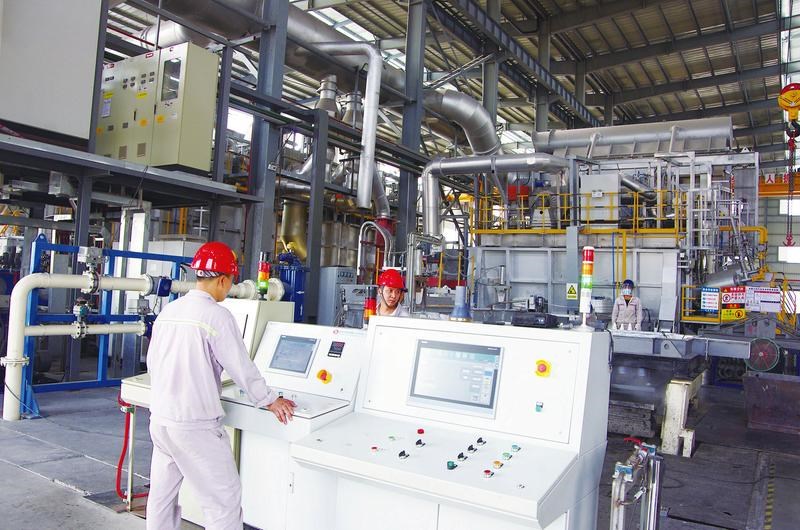 安徽佳晟金属科技有限公司是一家专业高端工业铝棒生产厂家,总投资3亿元,占地面积100亩,一期建有两条国内先进的铸棒生产线,主要生产各种规格优质圆铸锭,2021年6月正式投产。图为工人在铸棒车间内作业。