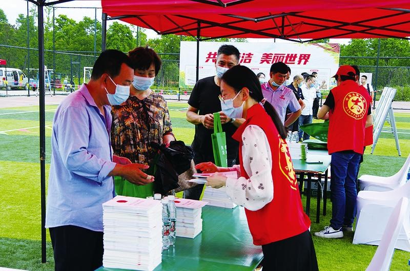 日前,集中区围绕“共建清洁美丽世界”这一主题,组织开展“6·5”环境日主题宣传活动。活动现场,志愿者们通过设立环境安全咨询台、摆放展板、发放资料等方式,宣传绿色消费、低碳出行、垃圾分类知识,提升居民生态环保意识,号召更多力量加入生态环保行列。记者鲍勇摄