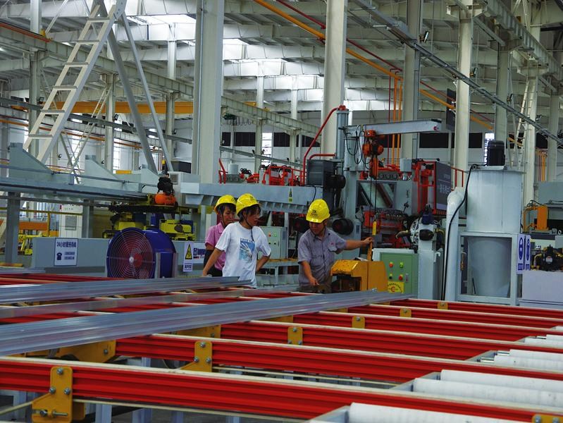 安徽加多利铝业科技有限公司年产4万吨铝基精密加工制造及高端智能门窗项目占地130亩,总建筑面积11万平方米。一期项目投资1.3亿元建设的以挤压、喷涂为主的生产车间已投入试生产,二期项目正在建设中。图为工人在项目一期挤压生产线上进行生产。