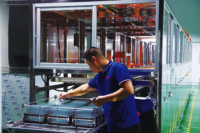 今后,该公司将在智能终端设备材料及整机、智能机器人、VR设备上持续发力,推动生产基地项目全面投产。届时,公司每年可实现产值7亿元、利税2000万元以上。图为该企业清洗车间一角。