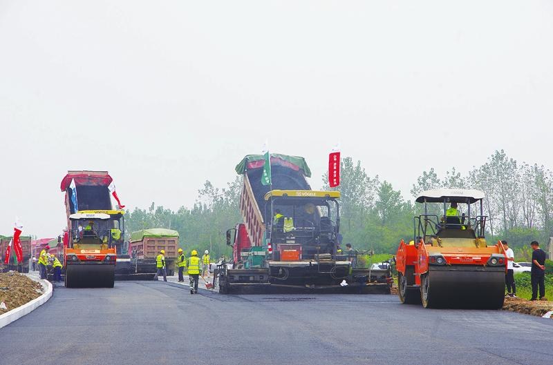 在该工程一标段路面沥青摊铺现场(原236国道与集中区凤鸣大道交叉口),项目经理黄尚修表示,将严格实行项目负责人带班制,倒排工期,加快施工进度,确保10月底建成通车。