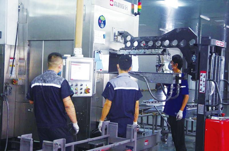 日前,记者来到该企业新厂区切片车间,工人们在宽敞、明亮、整洁的新车间内,围着崭新的切片机紧张忙碌着。
