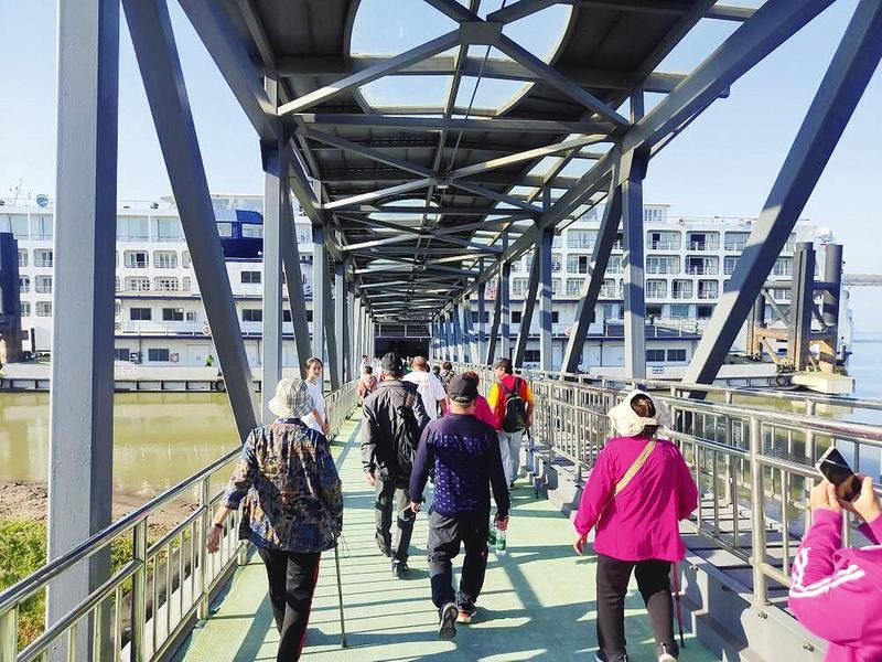 10月23日,池州·九华山旅游码头人声鼎沸、热闹非凡,近千名中外游客在池州尽兴游玩3天后返回游轮,继续前往下一站。据了解,在此停靠的是10月20日自上海出发前往重庆的两艘“世纪传奇”号游轮。