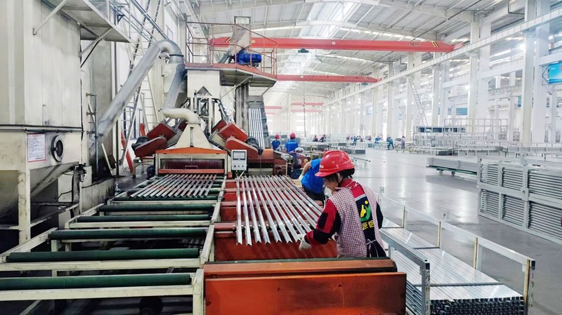 安徽浩源铝业科技有限公司主要生产工业型材的铝基新材料,近年来,该公司逐步推进熔铸、挤压、喷涂、表面处理等车间建设,不断延伸生产加工链条,陆续建成18条生产线。今年前三季度,该公司已完成产值近1.5亿元,全年产值预计可达2亿元。