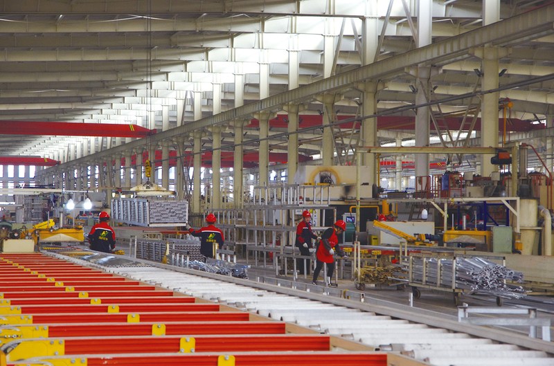 要实现高质量增长,必须制定科学的发展计划。作为一家主要生产太阳能边框、高端建材以及新能源汽车配件等工业型材的铝基企业,近年来,该公司坚持以创新驱动发展战略,在设备更新、产品研发和降本增效方面下了大功夫:氧化电泳车间全线进口竖式氧化线和卧式氧化线,可生产长度为9米的铝型材;引进先进的纳米表面处理工艺,可实现复杂结构的表面处理;喷涂车间拥有立式喷涂线1条、卧式喷涂线1条,年生产能力5万吨,属同类先进水平。“今年,我们计划对表面处理车间进行全面的智能化改造,进一步提升生产效率、降低能耗。”万浩说。