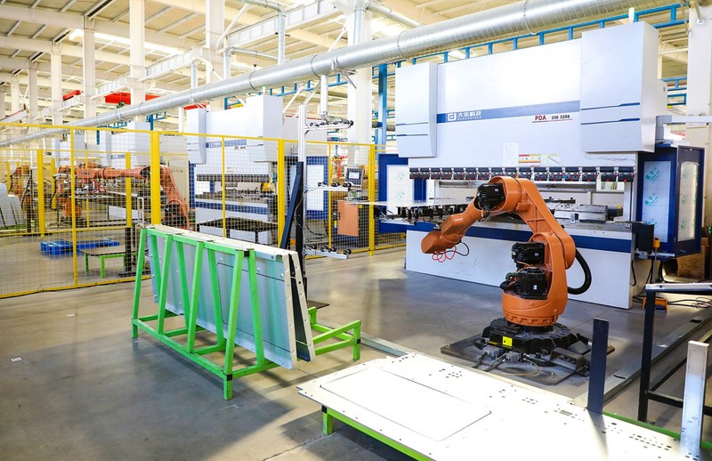 位于江南新兴产业集中区的安徽广远智能电力装备制造有限公司车间,智能机械臂有序运作,高效开展生产作业。