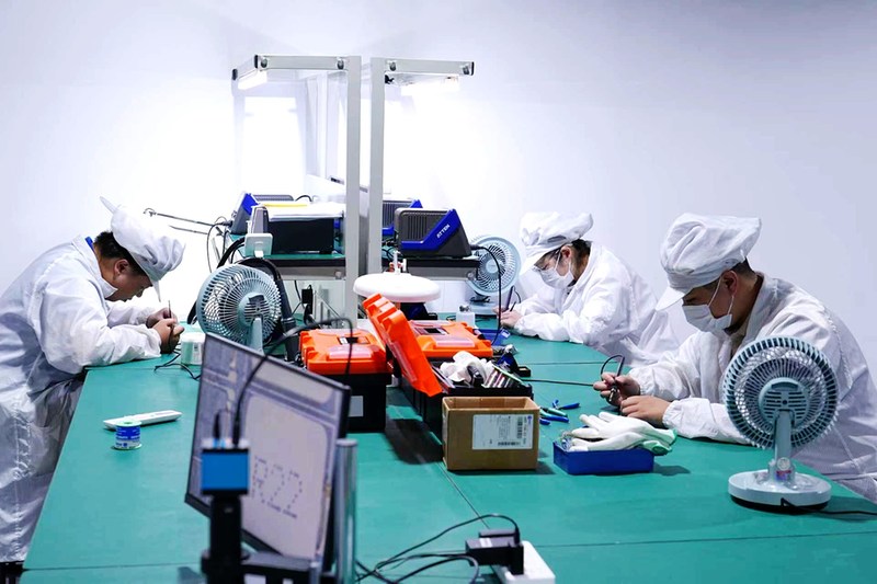 在安徽松果科技有限公司(以下简称“松果技术”)的电装车间里,一块块高度集成的电路板经丝网印刷、在线检测、高速贴片、氮气回流焊、自动光学检测、X光检测、电气装联等繁琐工序后,最终成为具有飞行器轨迹跟踪、遥测数据传输、生产线参数监控等功能的智能测控设备。