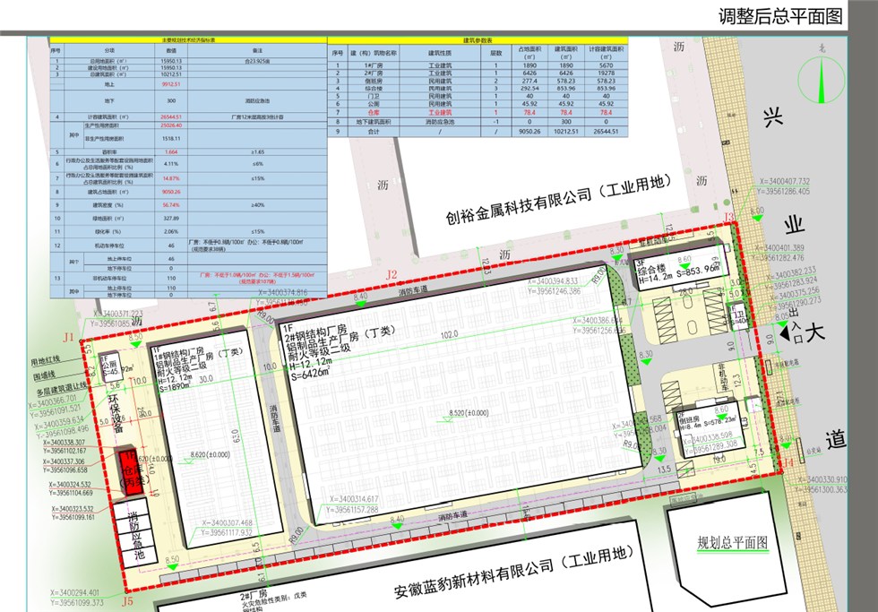 调整后总建筑面积为10212.51m²。容积率1.664,建筑密度56.74%,绿地率2.06%,均满足规划条件要求。