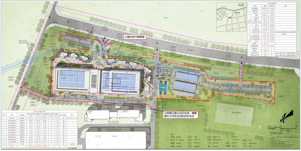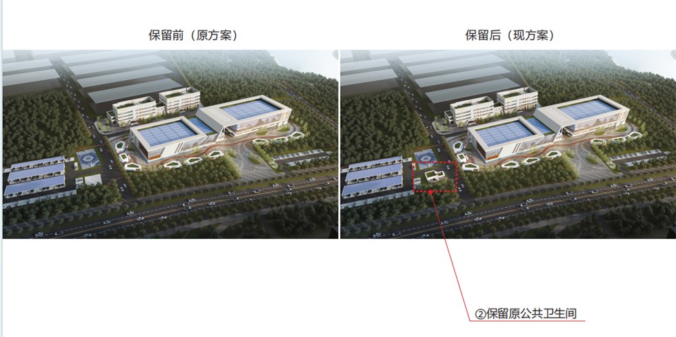 2.保留原公共卫生间,室外大巴车位及机动车车位相应调整。