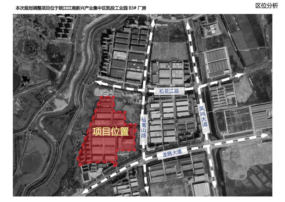 安徽省江之南建设发展有限公司凯投工业园B3#厂房室外增设配套设施方案调整项目位于仙寓山路与龙腾大道交叉口。