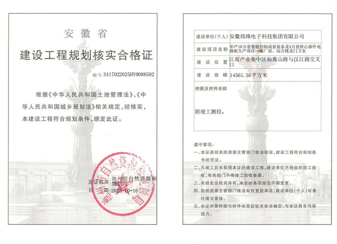 年产10万套智能控制成套装备及5万套核心部件电路板生产项目-A幢厂房、综合楼及门卫室《建设工程规划核实合格证》批后公布