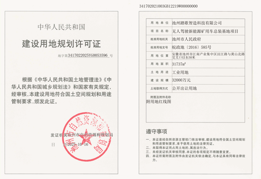 无人驾驶新能源矿用车总装基地项目《建设用地规划许可证》批后公布