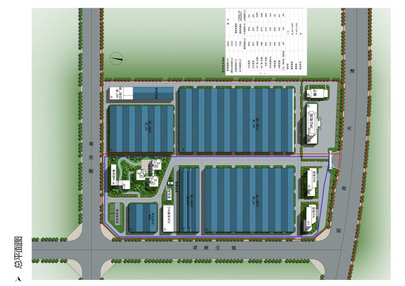 项目位于迎宾大道以北、仙寓山路以东,总用地面积约69504平方米(104亩),主要建设内容为单层厂房、仓库以及研发楼、职工公寓等配套设施。总建筑面积约5万平方米,计容面积约7.75万平方米,容积率1.14,建筑密度46.8%,绿地率14.6%。