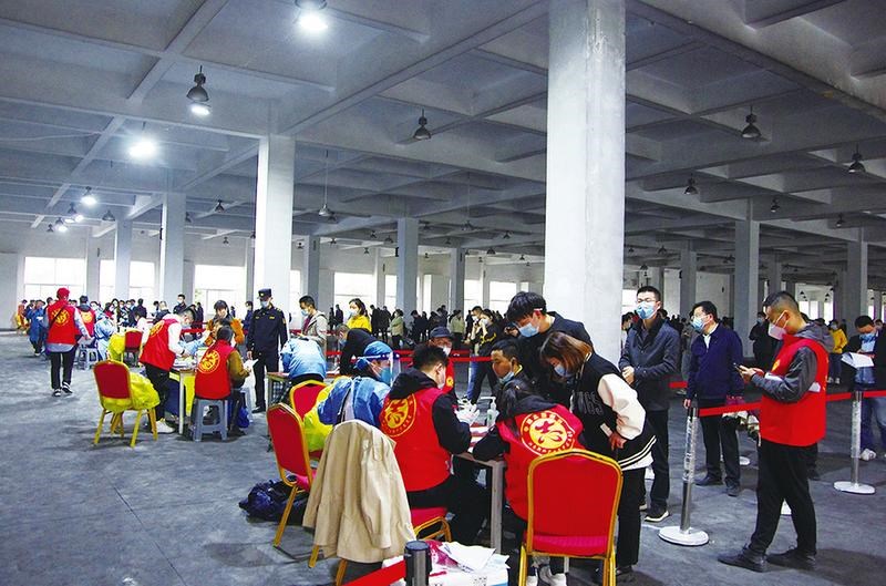 因原定检测计划被突如其来的天气状况打乱,部分企业员工难以准时到达,为真正方便群众、服务园区职工,该区党员、志愿者积极与相关负责人和医护人员沟通,采取因地制宜、分点采样的方式,确保了各企业员工应检尽检。从清晨至深夜,集中区的党员和志愿者们不停地忙碌着,直至最后一名员工完成核酸采样。